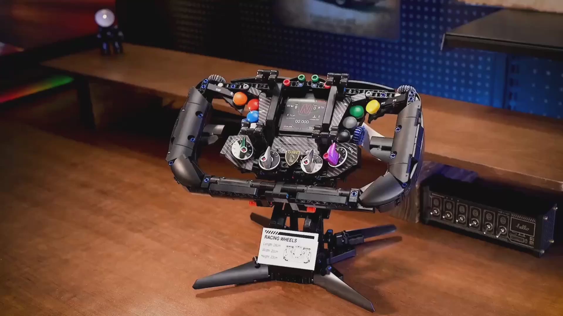 Sharp lines, supercar attitude. The 1:1 Lambo Supercar Steering Wheel is a brick-built steering wheel MOC inspired by modern exotic interiors—bold shaping, aggressive styling, and a premium display presence.